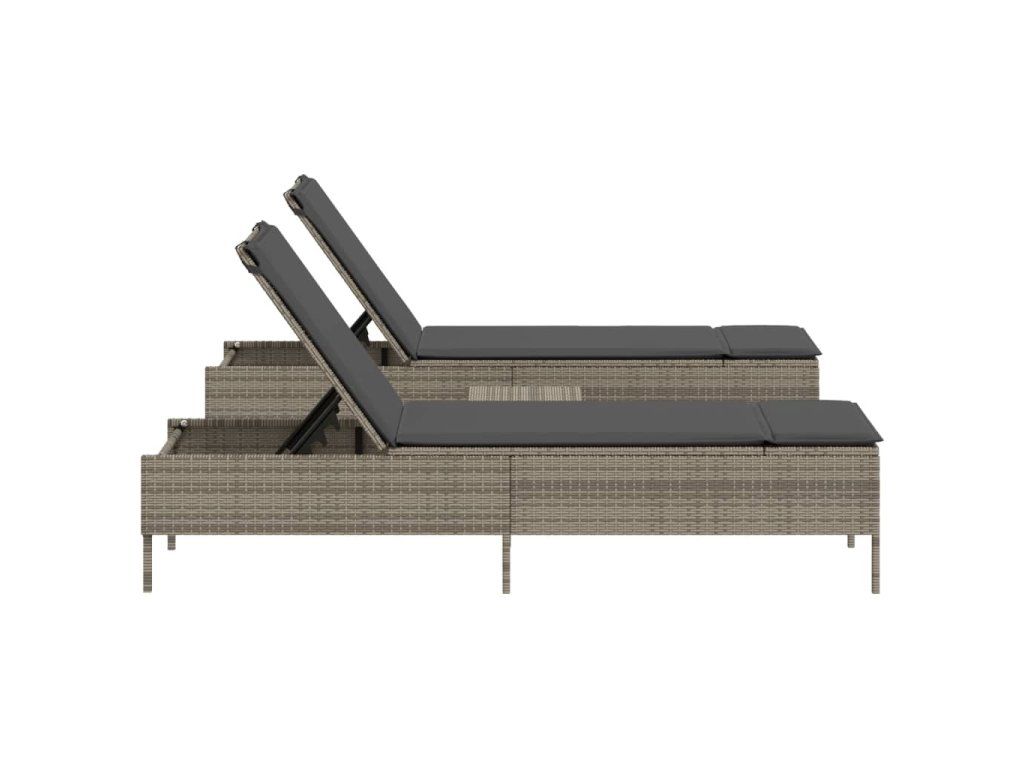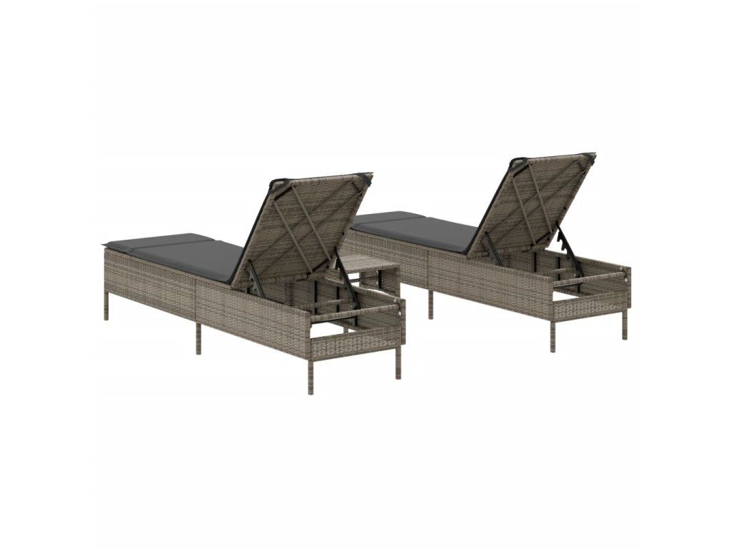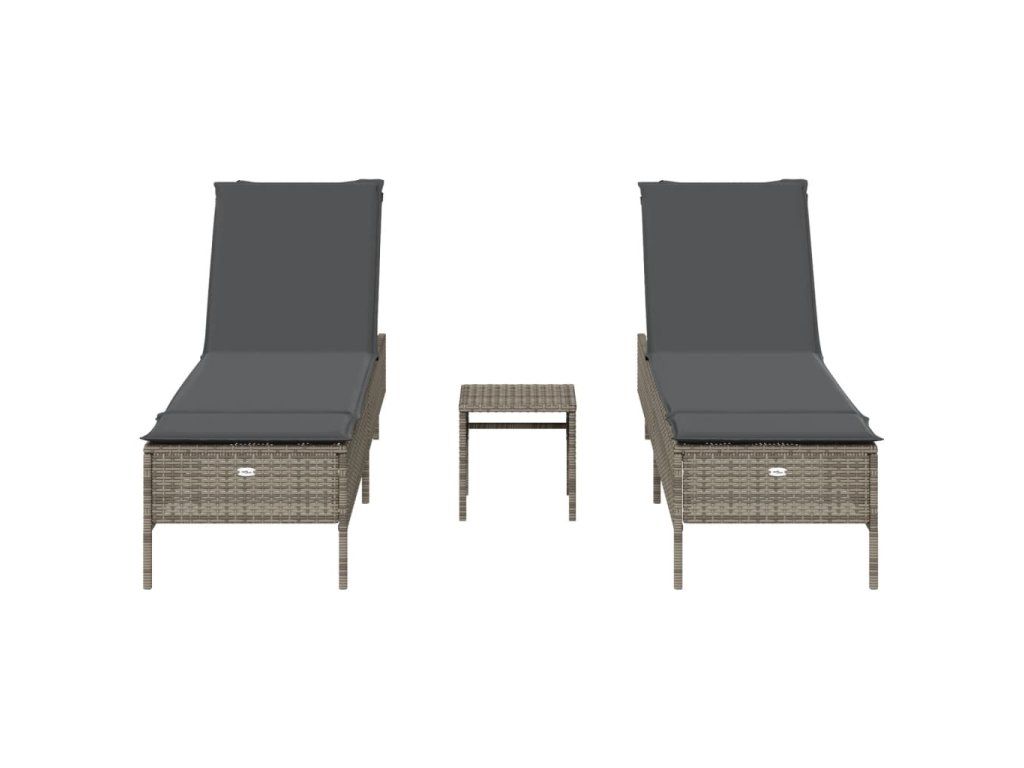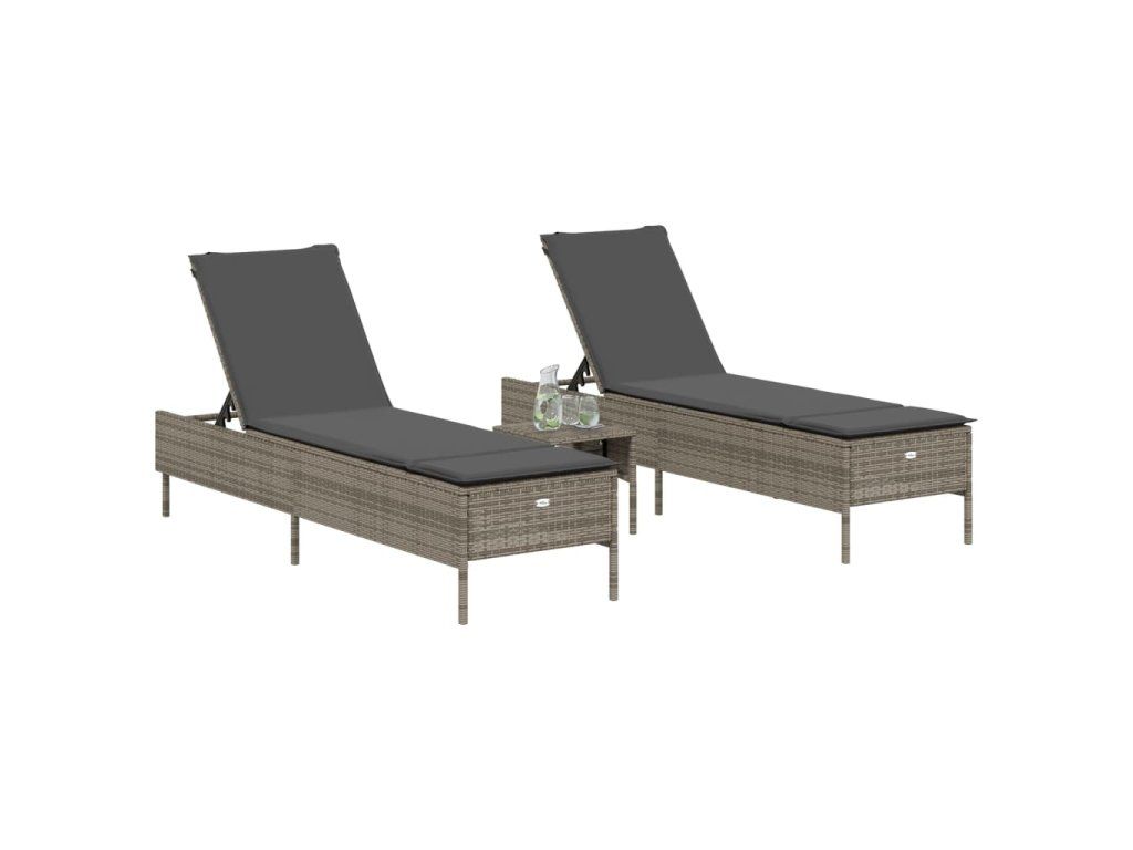 3dílná sada lehátek s poduškou šedá polyratan