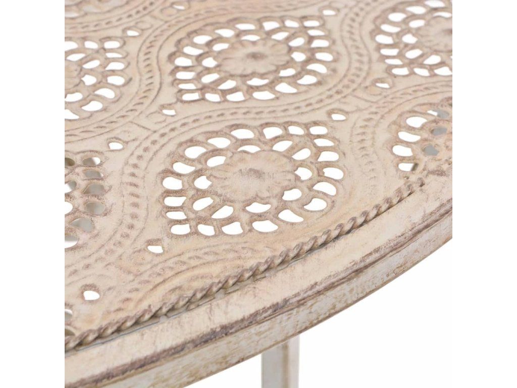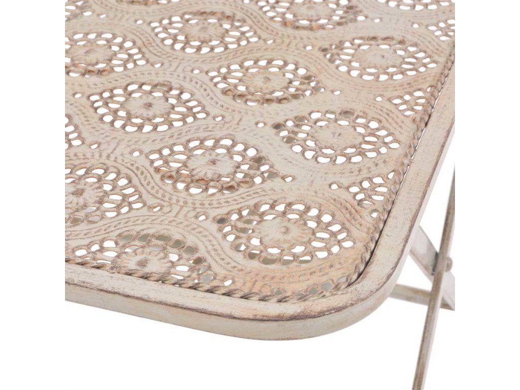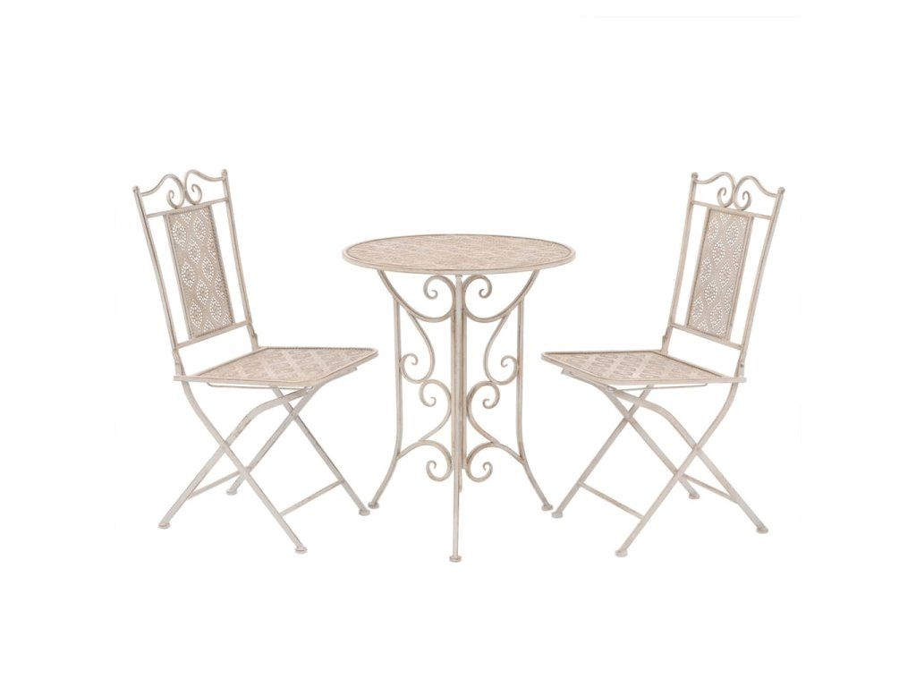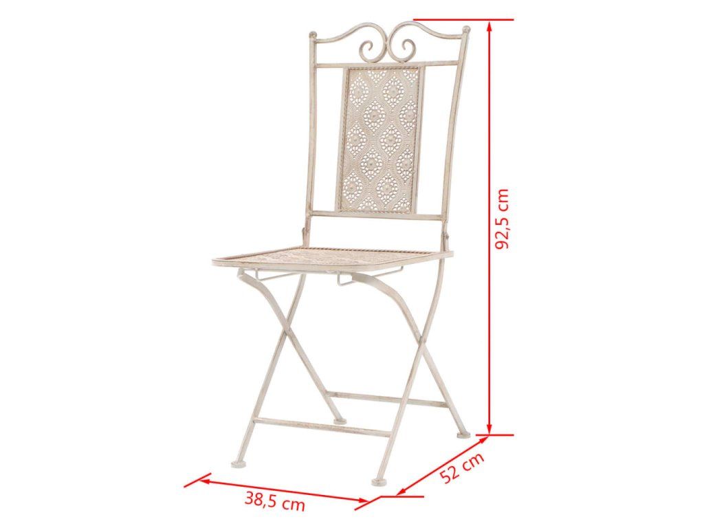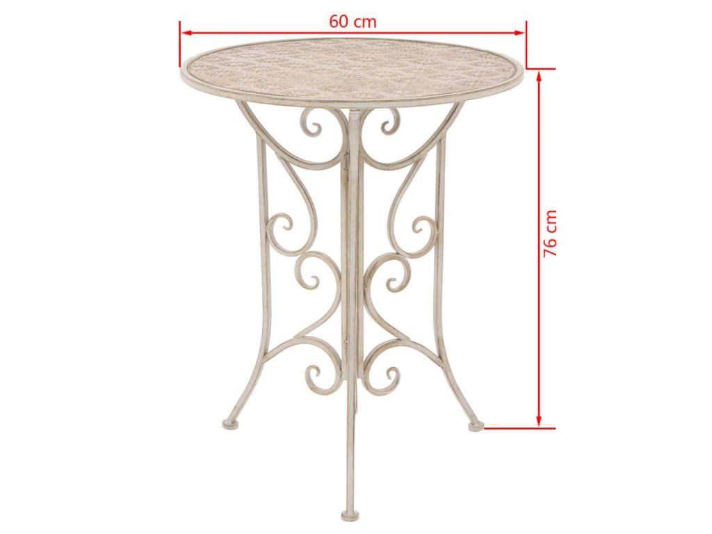Tento bistro set je vyroben z práškové oceli, která je odolná vůči povětrnostním vlivům a je velmi pevná. Fantastické ručně malované dekorace a zrezivělý povrch učiní jídelní set středobodem každé zahrady nebo terasy či balkonu. Klasická sada zahradního nábytku se velmi snadno čistí vlhkým hadříkem. Židle lze snadno skládat, aby se ušetřilo místo, když je nepoužíváte.