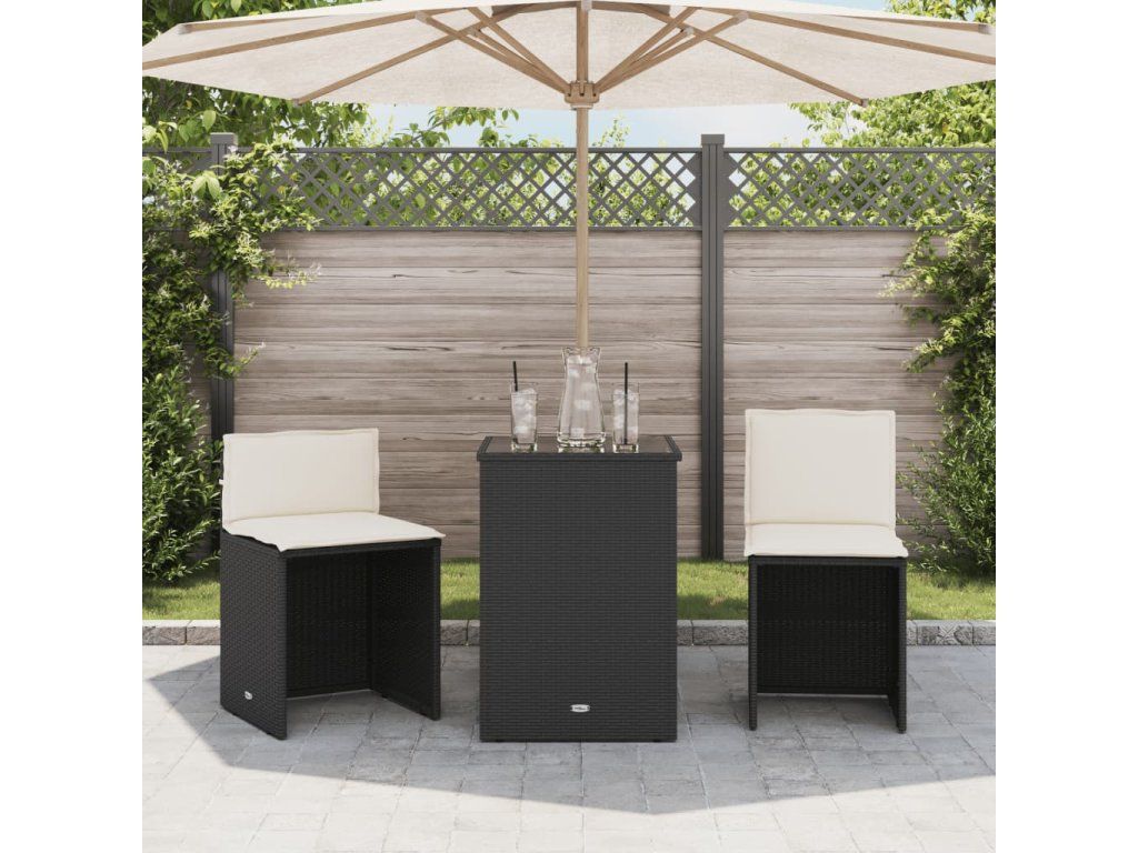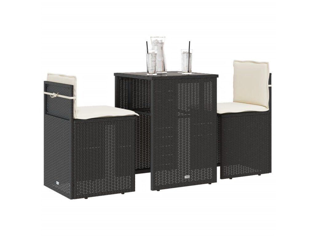 3dílný bistro set s poduškami černý polyratan